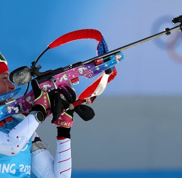 Biathlon is a winter sport that mixes cross-country skiing and rifle shooting, so athletes need both speed and accuracy. Every missed target leads to either extra time added or a 150 m penalty loop, depending on the race format.